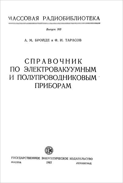 Книга содержит краткие справочные сведения об отечественных и некоторых современных зарубежных типах приемно-усилительных радиоламп, кенотронах, генераторных лампах малой и средней мощности, кинескопах, осциллографических трубках, стабилизаторах напряжения и тока, полупроводниковых диодах и транзисторах.